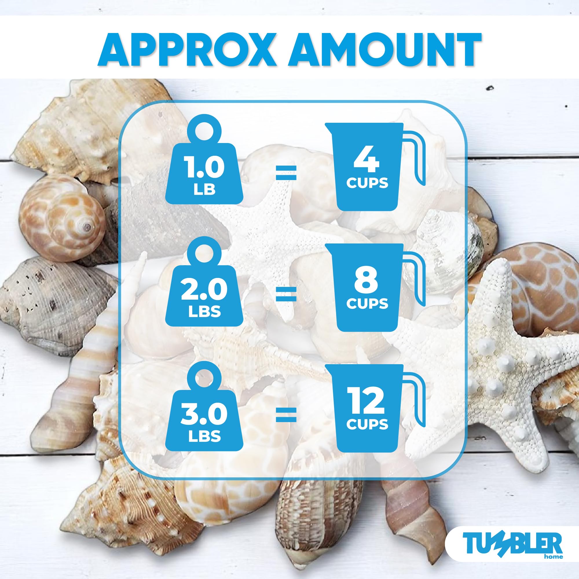 - We love this extraordinary 2 pound grouping of seashells! Ranging in size from 3/4 in to 3 inches, they are a superb set of shells for every purpose. Adding them to a vase or glass lamp with sand is striking!