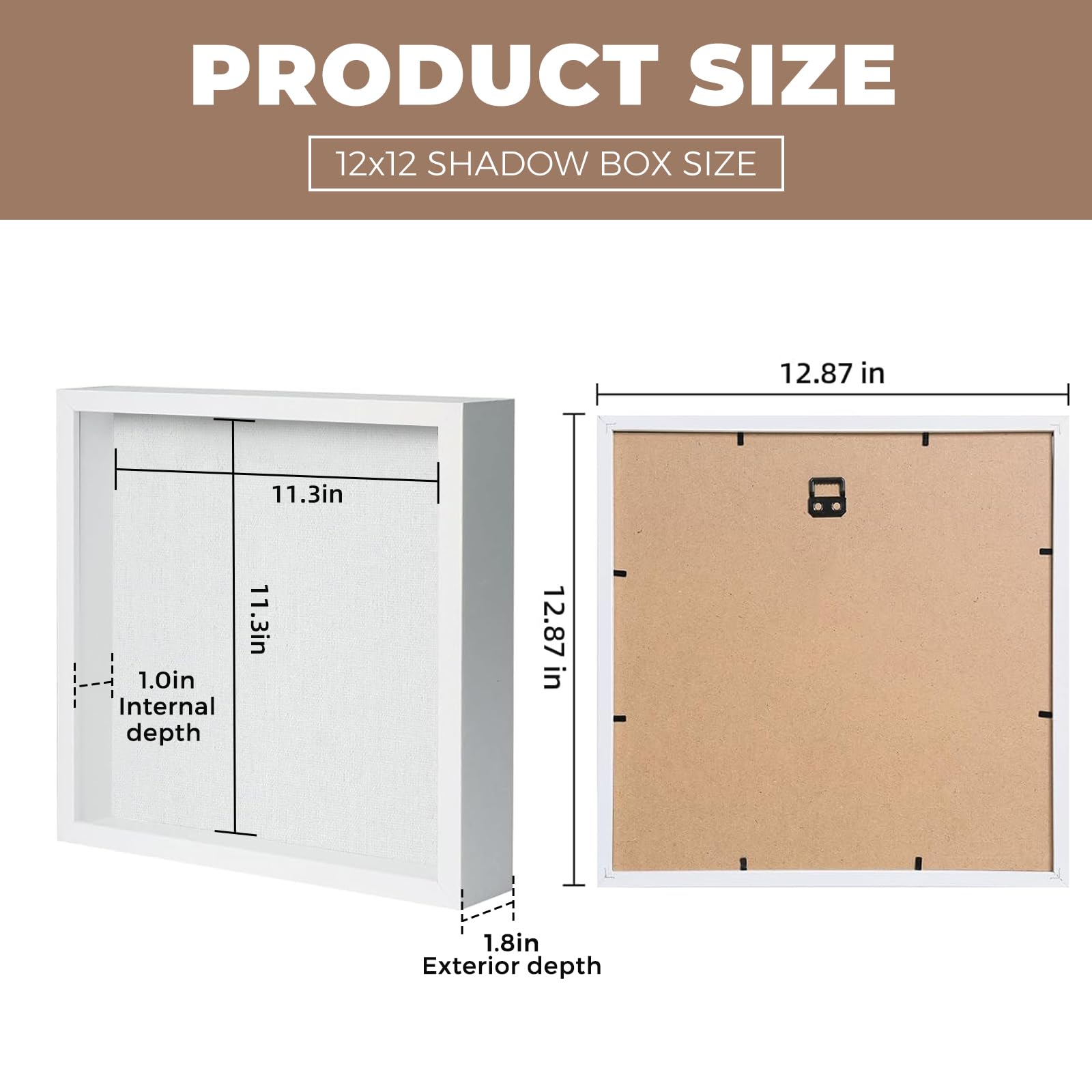 Muzilife 12x12 Shadow Box Picture Frame with Linen Board - Deep Wood & Tempered Glass Display Case Memory Box Baby Sports Memorabilia, Pins, Awards, Medals, Wedding, Tickets and Photos (White)