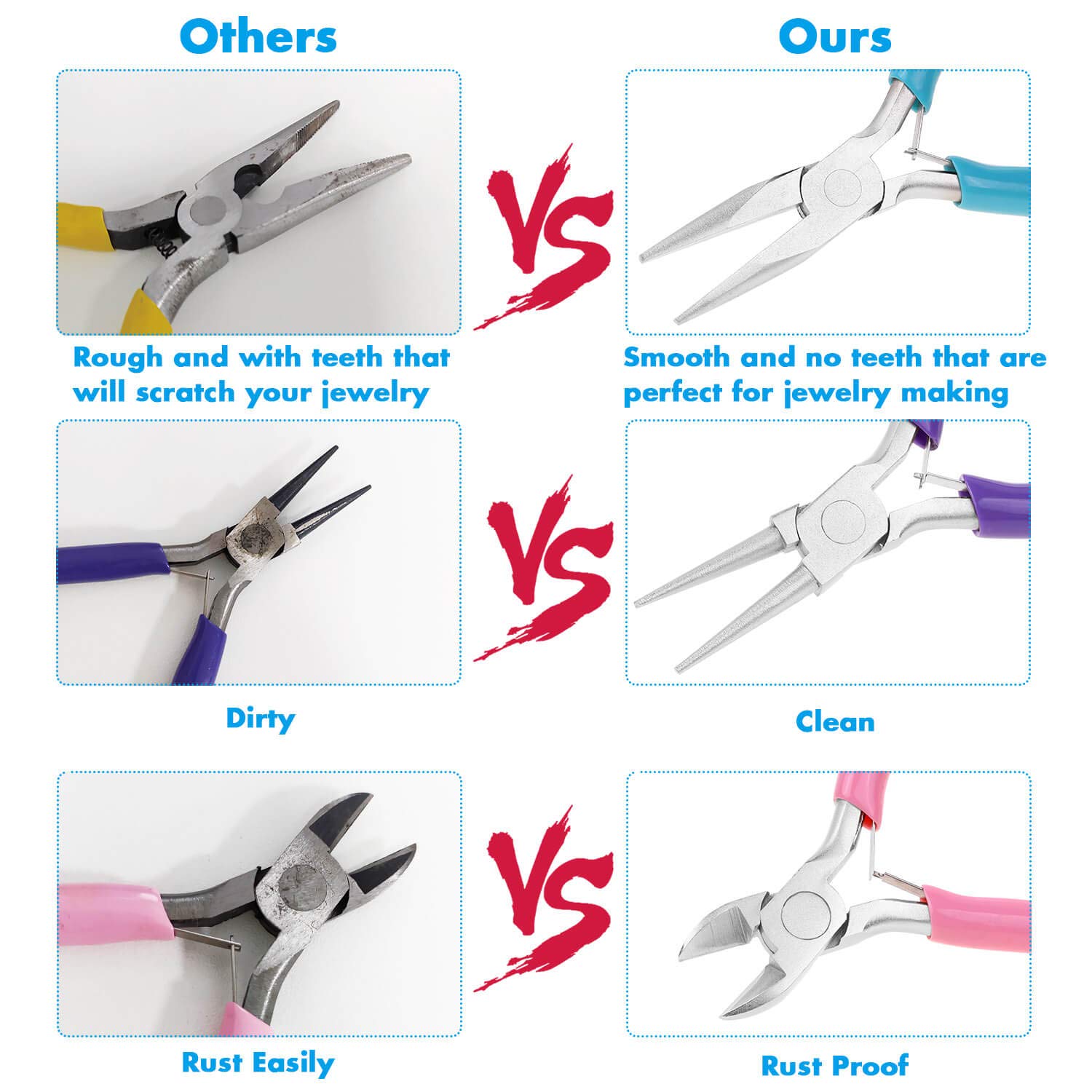 - PLEASE NOTE: The jewelry making tools are coated with oil to prevent rust.If the jewelry making pliers you received have some oil on the head that make it look like dirty, please do not worry. Please wipe them clean with a cloth before use and apply oil to them before storage, which will help the pliers keep anti-rust