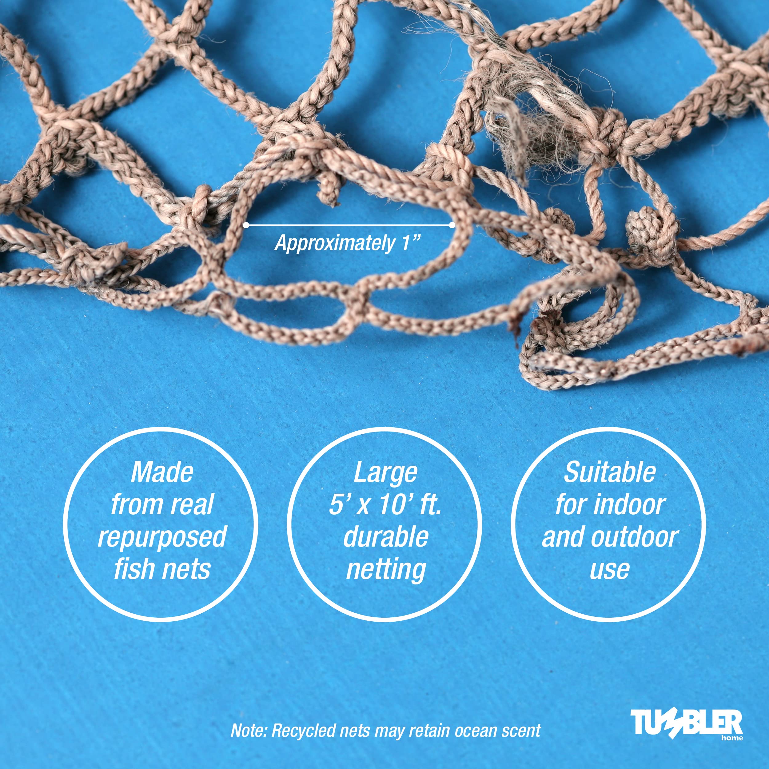 - DECORATION FOR ANY DWELLING: Our nautical netting are durable and can be used both indoor and outdoors as wall net decor, table centerpiece, table runner or just a great decorative accent for any coastal home, restaurant, guesthouse, airbnb or hotel. Decorate your beach cafe, bar, cabana or guest house with an authentic repurposed fish net by Tumbler Home.