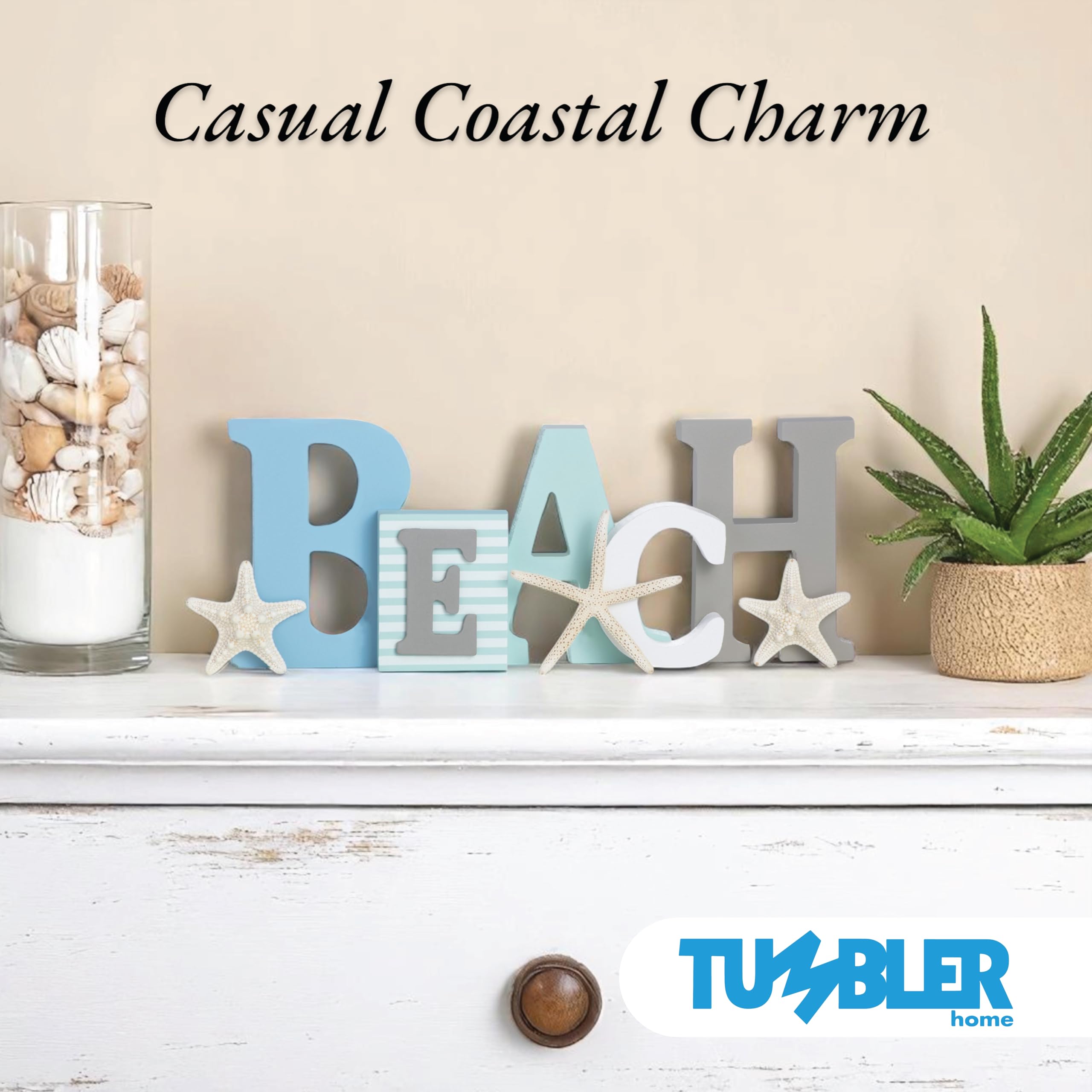 - Enhances the serene natural feel of your beach themed kitchen, bath, bedroom, living room, “any” room – use your creativity! In your office - the Beach Word Starfish vignette will provide a tranquil retreat from the stress of the work place.